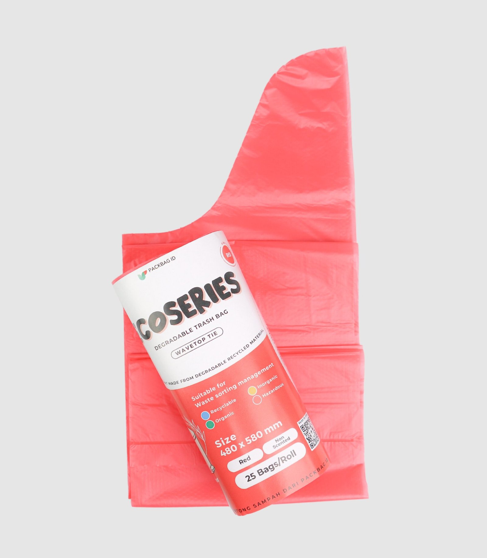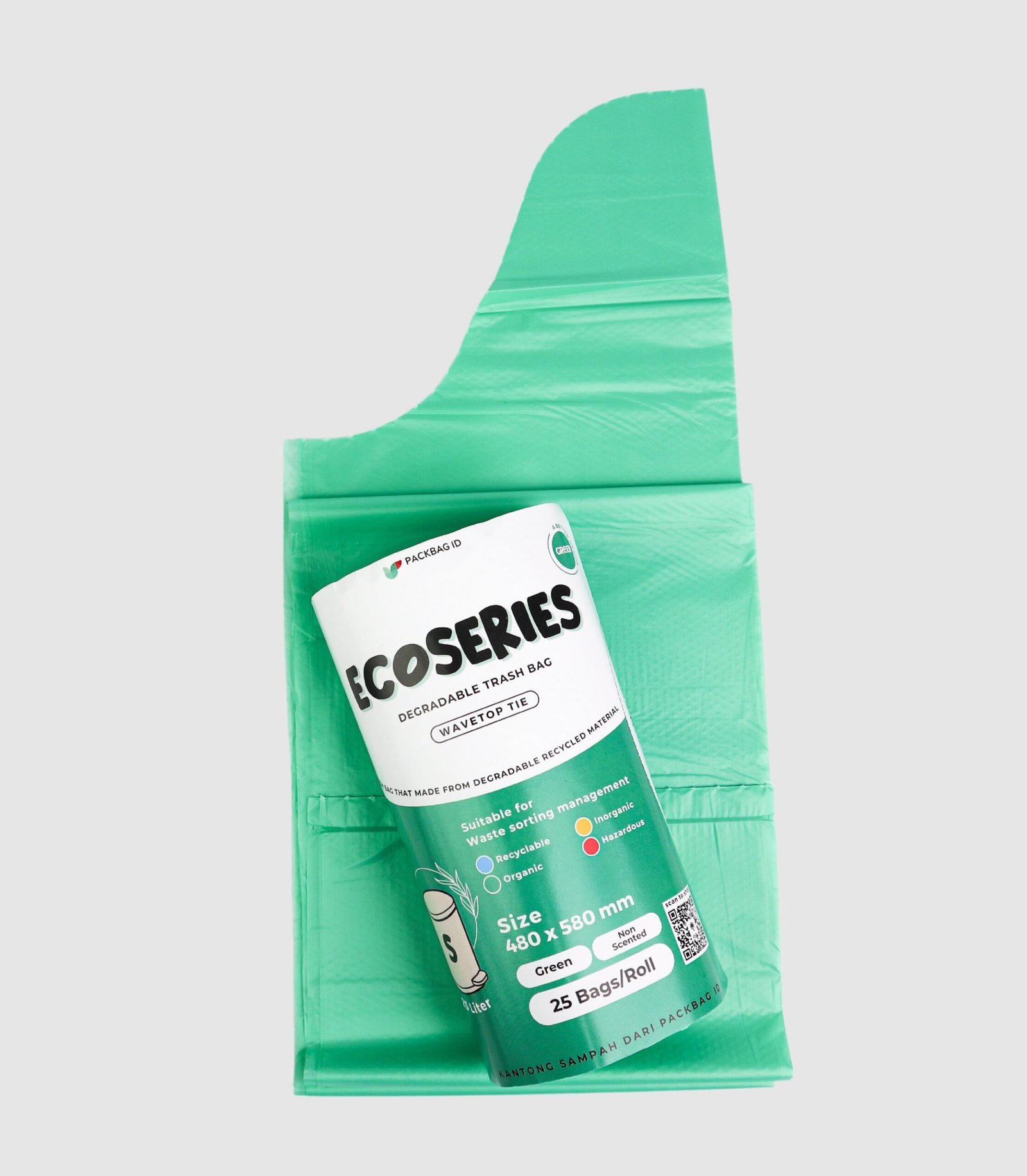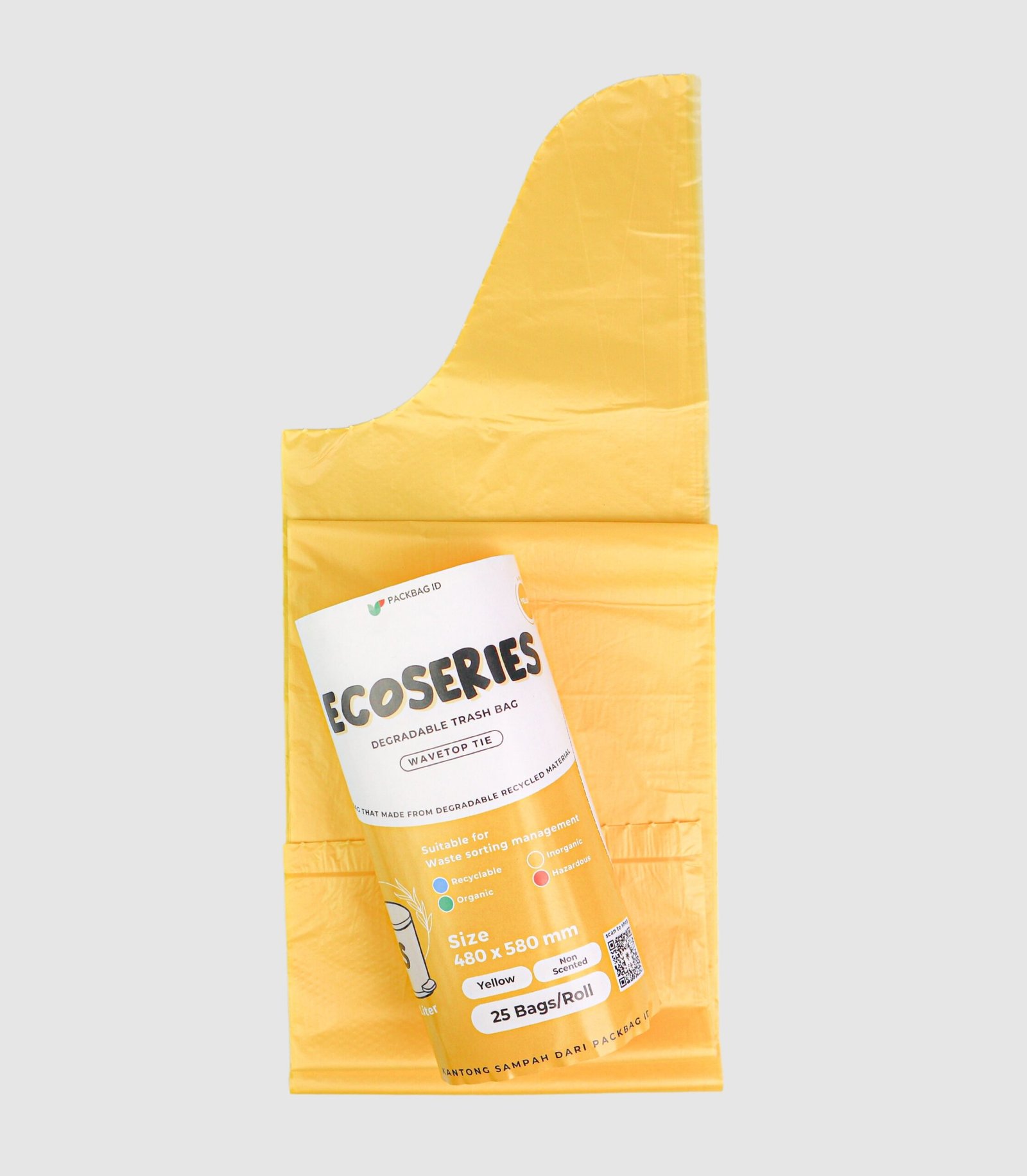 Mulai kebiasaan memilah sampah dari rumah dengan Ecoseries 25 dari Packbag ID — kantong sampah degradable tanpa aroma berkapasitas 25 liter.